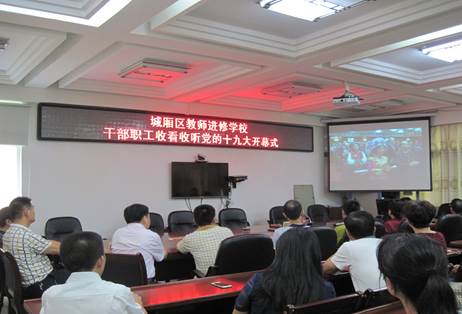 10月18日上午9时,中国共产党第十九次全国代表大会在北京隆重开幕。我校组织干部职工认真收看收听党的十九大开幕盛况直播,聆听习近平总书记所作的振奋人心的工作报告。观看结束后,大家纷纷表示,一定要认真研读报告,领会精神实质,把握核心要义,指导推动工作。学校党支部要求全体干部职工要把学习贯彻习近平总书记报告和党的十九大精神作为当前和今后一个时期首要政治任务,采取多种形式,切实抓紧抓好理论武装;要把学习贯彻习近平总书记报告和十九大精神与实际工作结合起来,立足岗位,履职尽责,埋头苦干,扎实做好本职工作,为城厢教育作出积极贡献。(陈霞金)