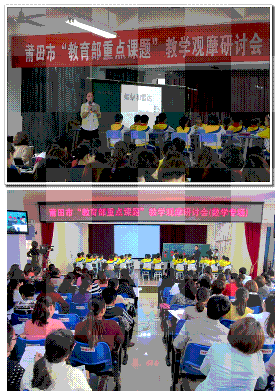 “百般红紫斗芳菲”的暖春激起了教师们心中课题研究、课堂教学改革的主旋律。4月21日和23日,由我校申报立项的全国教育科学“十二五”规划教育部重点课题“小学教学内容改革及其对教学影响的深化研究”研究成果展示暨课堂教学观摩研讨活动,分别在荔城区梅峰小学(语文专场)和莆田市实验小学(数学专场)隆重举行。来自全市各课题实验学校的课题组成员、各县(区)教师代表、名师工作室成员、莆田学院应届本科毕业生共500多人分别参加了语文专场和数学专场的活动。莆田市教师进修学院院长黄荔军、福建省教育科学研究所基础教育研究室主任郭少榕研究员等领导专家参加了观摩研讨活动。此次活动,总课题组成员和实验学校老师分别展示了2节语文课——《“凤辣子”初见林黛玉》、《临死前的严监生》,2节数学课——《1000以内数的认识》、《平均数》观摩研讨课。4位老师的研究课,用具体形象的教学行为诠释着课题研究的核心理念、价值行为。活动期间主办者还特邀全国知名教学专家林莘、罗鸣亮两位老师进行现场教学示范与专题讲座,他们分别做了《蝙蝠和雷达》示范课、《让教学更愉悦的学习共同体》专题讲座和《平行四边形和梯形的认识》、《备课的思考》专题讲座。两位教学专家的示范课和专题讲座获得听课老师的满堂喝彩,让我市小学教师在家门口领略了全国知名教师的教育思想、教学智慧和教学风采,也为教育部重点课题的研究送来了新的理念和信息,给我们带来有益的启示。这是我市首次邀请全国知名小学教学专家进行现场课堂教学示范。此次教学观摩研讨活动是我校“小学教学内容改革及其对教学影响的深化研究”课题研究的盛会,活动的成功举办,必将全面推动我区、乃至我市基础教育课题研究向纵深发展。(范国强)