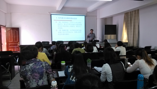 应秀屿区教育局、进修学校邀请,我校教研员范国强老师于10月21日为该区新一轮骨干教师培训班做专题讲座。讲座题目为《当代散文的本体特征与教学核心》。这是范老师近年来重要的课题研究成果之一,他以先进的文学理论和教学理念、深入浅出的教学实例和生动风趣的讲述语言,博得广大学员的好评。(范国强)