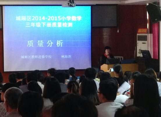 9月18日,在我校举行全区2014-2015学年下学期三年级数学期末质量分析会议,各中心小学、区直学校分管教学副校长,全区三年级数学全体教师及相应学科教研员约有130人参加。会议有两个议程:1、林海萍老师从教学内容与目标回顾、试卷命题意图和特点、答题情况统计、答题情况反馈以及教学建议等几方面作细致地分析。2、林国忠老师作全面的总结。会议取得预期的效果。(陈向真 林海萍)