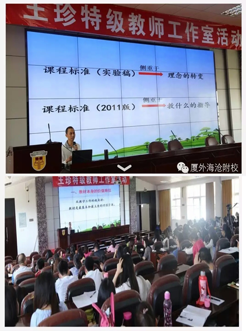应厦门市海沧区教师进修学校邀请,特级教师、省名师、我校副校长徐国裕于5月3日赴厦门参加“王珍特级教师工作室教学研讨会”徐国裕副校长做《有效课堂从研读教材起步》教学主张专题讲座,他通过广博的数学教学实例、深入浅出的语言色彩,让原本深奥难懂的数学理论、教学理念变得亲近通俗易懂,充分展现我校教研员的研究成果,博得听课老师阵阵喝彩。此次活动,加强了我区与教育发达地区的教学交流。(林国忠)