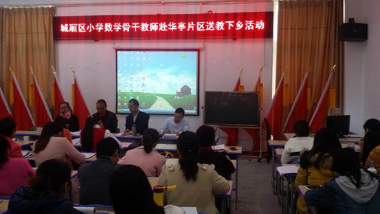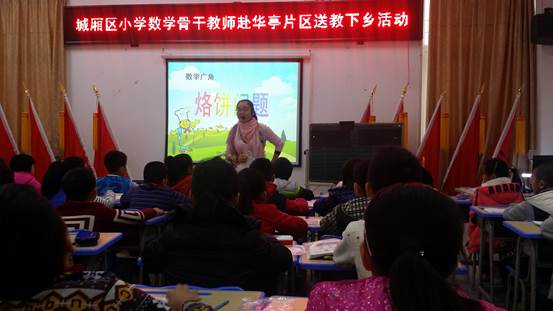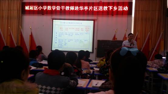 11月29日,我校小学数学学科送教下乡活动在华一中心举行。来自华一中心、华二中心、园头学校、埔柳学校全体数学教师和进修学校数学教研员共60多人参加。整个活动分二个议程,一是课堂观摩。聆听由沟头小学郑丽英老师执教的四年级《烙饼问题》一课和逸夫实小陈聪老师执教六年级《认识百分数》一课。二是互动交流。首先两位老师就磨课过程和教学感悟与全体老师进行交流。接着与会老师进行互动交流点评。最后进修学校徐国裕副校长和林国忠组长从课堂教学中如何有条理、有脉络地安排各个学习环节对本节课进行点评,他们严谨、睿智、聊天式的点评方式吸引了老师们的眼球,让与会老师受益匪浅。(林海萍)