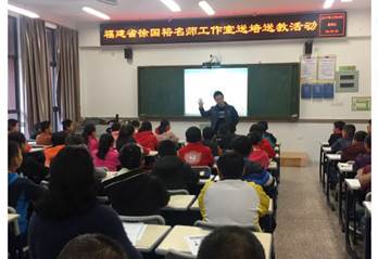 12月29-30日,在即将告别2017年之际,我校副校长徐国裕带领福建省徐国裕名师工作室部分团队成员和研修人员赴石狮市教师进修学校附属小学,举行以“研读教材策略与深度学习课堂教学研究”为主题的送培送教活动及部分研修人员培训工作。此次送培送教采取“名师同课异构+诊断点评+专题讲座+名师现场答疑”的菜单式展开。先由福建省第九届小学数学“问题解决”现场课堂教学一等奖获得者、龙岩师范附小教务处副主任刘文东和福建省学科带头人、福州市林则徐小学教导处主任叶育新做人教版六年级上册《数与形》同课异构展示,随后福建省教学名师、石狮市教师进修学校副校长黄雅芳、我校徐国裕和林国忠老师分别对两节课做诊断与点评。本次活动安排的专题讲座先由福建省学科带头人、我校小学教研组长林国忠老师做《高效实施数学课堂练习的实践与探索》主题分享,再由特级教师、正高级教师、领衔名师徐国裕做《有效课堂从研读教材起步》主题阐述并与听课教师进行现场互动,解答教师日常教学中的疑点、难点问题。(林国忠)