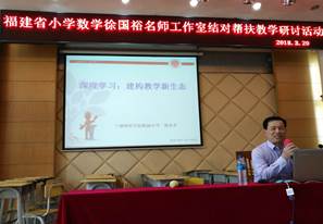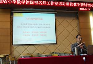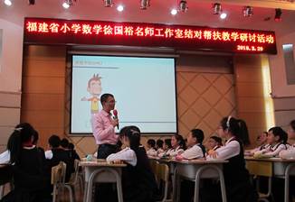 3月20日-21日,由我校副校长徐国裕领衔的省小学数学徐国裕名师工作室与龙岩市结对帮扶第二次教学研讨活动在龙岩市松涛小学举行。此次活动得到了岩市教育局、教育科学研究院的高度重视,龙岩教科院副院长郝炜、小幼室主任俞石泉、教科室副主任黄丽红与龙岩市直小学、新罗中心城区的200多位教师共同参加。研讨活动中,晋江市第二实验小学副校长许贻亮做《分数的再认识》教学示范课,龙岩市松涛小学董仁禧和龙岩市新罗区大洋小学易锦泉两位老师也分别做人教版《分数的意义》教学展示。省师范大学数学与计算机学院教授董涛博士对三节研讨课分别进行课堂教学诊断。随后,董教授又携同徐国裕名师工作室成员、我校小学教研组长林国忠与参会老师互动、答疑解惑。徐国裕副校长和宁德师院附小副校长杨良春分别做《“数的运算”教学改革的探索与实践》和《深度学习:构建教学新生态》专题讲座。两位名师接地气的以理论为支撑的实践指导,为所有参会教师的教学引领了方向,提供了切实可行的实施路径与策略。本次活动围绕“基于核心素养的深度学习课堂教学研究”主题,以“数与代数”领域为专题进行研讨,对龙岩教师进行了理念上的精准引领和课堂教学的精准帮扶。(林国忠)